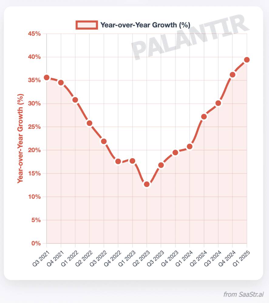 Rule of 40 Performance: Palantir hit an 83% Rule of 40 score in Q1 2025 (39% growth + 44% adjusted operating margin). That’s exceptional performance for any SaaS company, let alone one dealing with complex enterprise deployments.