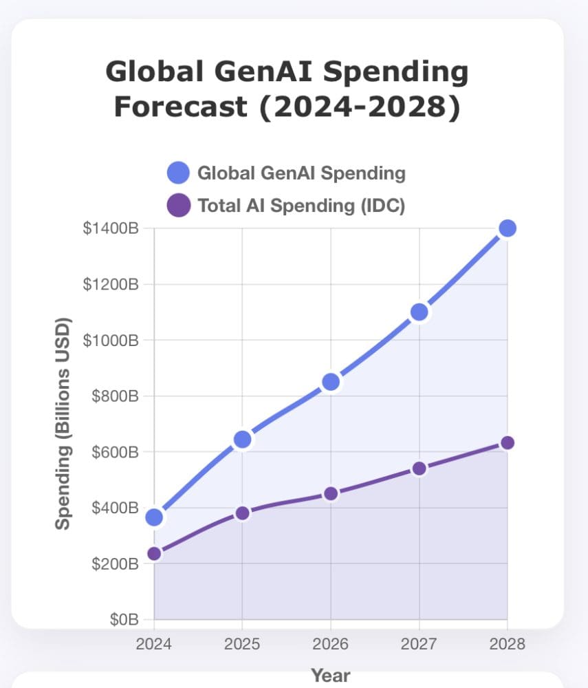 - Projection: Gen AI primed for 10% of related spending by 2028 — three times faster than SaaS adoption