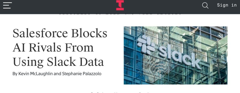 Salesforce just fired the first shot in what will become the defining battle of enterprise software’s next decade. By blocking AI rivals like Glean from accessing Slack data, they’ve crystallized the central question every SaaS vendor will face: Is the data in your app YOUR data, or your customer’s data?