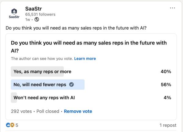 So what I think is going to quickly happen is as soon as AI AEs work really well for SMB and lower dollar sales, is that almost everyone will quickly adopt this motion. PLG + AI AEs.