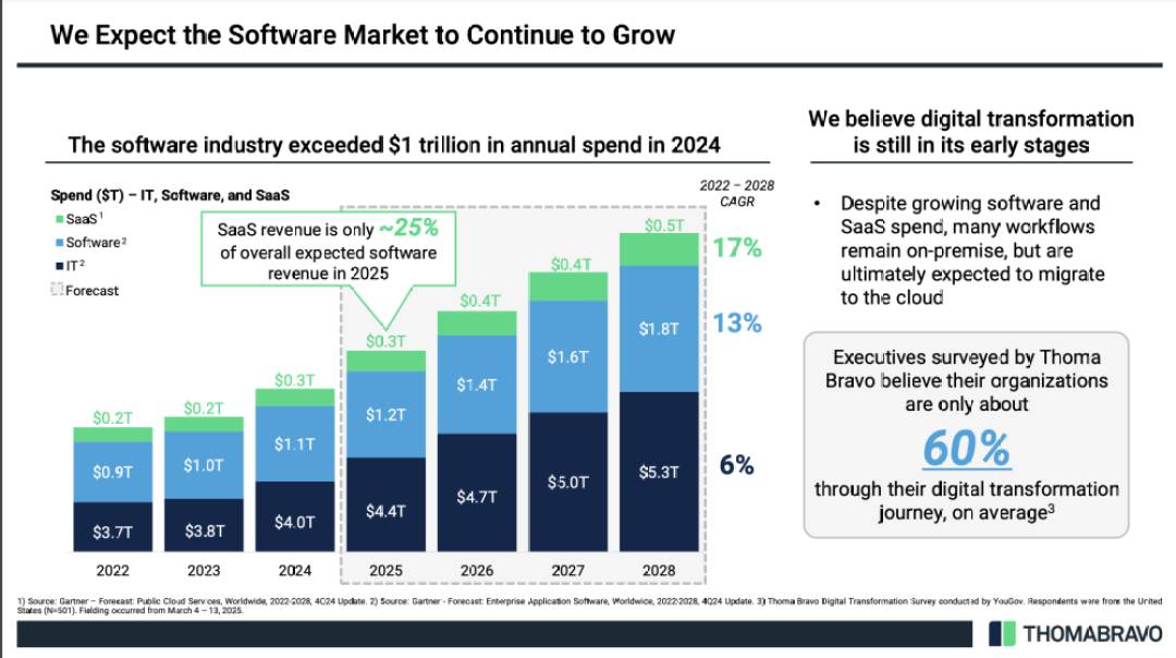 This is what we are all seeing and feeling, although as Thoma Bravo notes, it’s early. Morgan Stanley said recently AI spend is about 50% new, 50% repurposed from the rest of the IT budget. That 50% new is enough to fuel the growth we see above.
