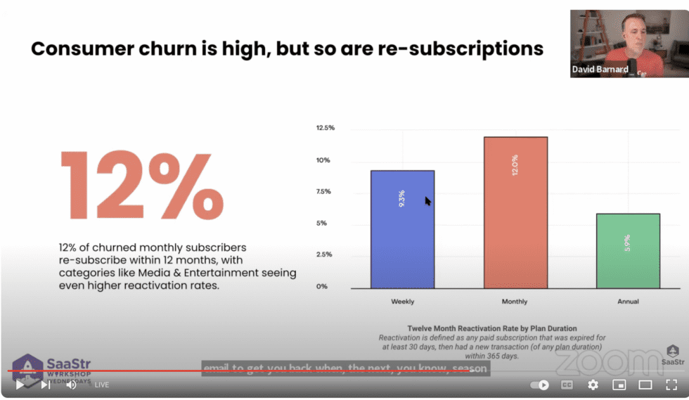 So that’s what we should all plan around. That up to 12% our customers that cancel … will come back later. If you do the right things. It may be years later in SaaS. Now as you can see above, it’s lower in their “annual” bucket, just 6%. So maybe you’ll see 8%-10% come back later, on average.