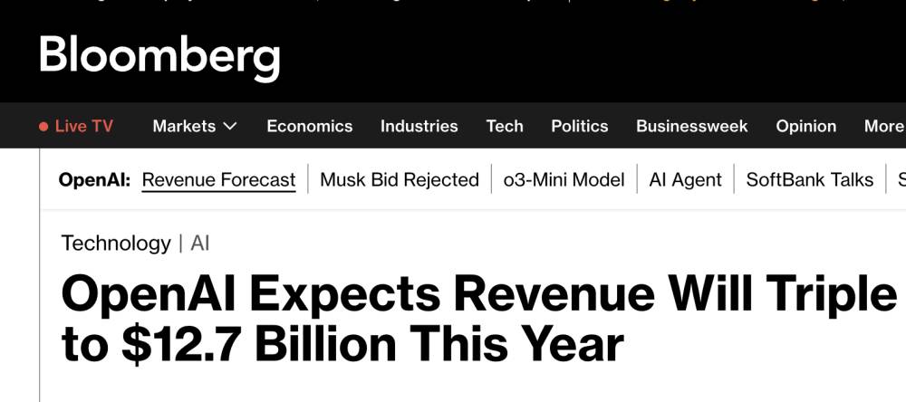 - Open AI did $3.7 Billion in revenue last year, plans for $12.7 Billion this year and $29.4 billion next year
