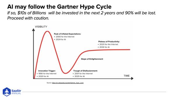We’re also potentially in a hype cycle. There is a close parallel between how the internet disrupted society and software and how AI will, too. If the internet rolled out in 1997, then our current hype cycle is what it was like in 1998.