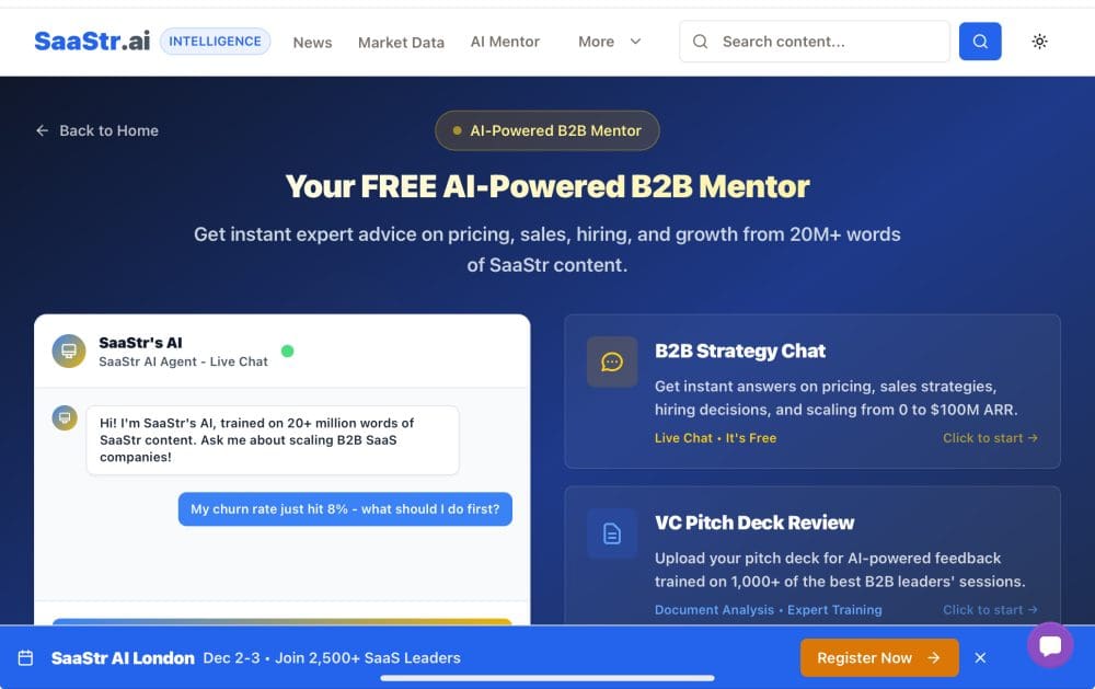 - New SaaStr.ai homepage: A complete rebuild that can do exponentially more than our old static site. We’re slowly rolling it out – thousands use it daily, but that’s still a fraction of SaaStr.com traffic. And that’s intentional.