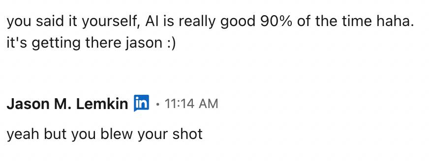 This CEO’s pitch actually demonstrated several of these strengths. His AI had clearly analyzed my content, understood my audience, and crafted messaging that resonated with my specific situation.